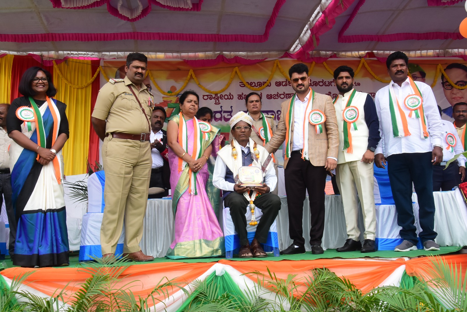 ರಾಜ್ಯ ಸರ್ಕಾರಿ ಎಸ್ಸಿ ಎಸ್ಟಿ ನೌಕರರ ಸಮನ್ವಯ ಸಮಿತಿಯ ಅಧ್ಯಕ್ಷರಾದ ಲಕ್ಷ್ಮಿ ಪುತ್ರ ಅವರಿಗೆ ವಿವಿಧ ಸಂಘ ಸಂಸ್ಥೆಗಳಲ್ಲಿ ನಿರಂತರ 36 ವರ್ಷಗಳು ಸಕ್ರಿಯವಾಗಿ ತೊಡಗಿಸಿಕೊಂಡು ಗಣನೀಯ ಸೇವೆ ಸಲ್ಲಿಸಿದ ಹಿನ್ನೆಲೆಯಲ್ಲಿ ತಾಲೂಕ ಆಡಳಿತದಿಂದ 77ನೇ ಗಣರಾಜ್ಯೋತ್ಸವ ಆಚರಣೆಯ ವೇದಿಕೆಯಲ್ಲಿ ಸನ್ಮಾನಿಸಿ ಗೌರವಿಸಲಾಯಿತು.