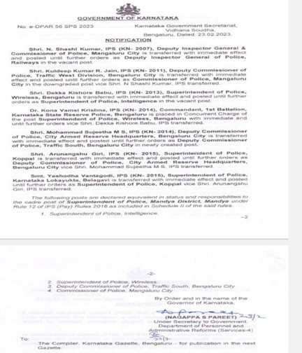 ಸರ್ಕಾರದ ವರ್ಗಾವಣೇ ಪರ್ವ ಶುರುವಾಗಿದ್ದು ಇಂದು ಮಂಗಳೂರು ನಗರ ಪೊಲೀಸ್ ಆಯುಕ್ತರಾಗಿದ್ದ ಎನ್.ಶಶಿಕುಮಾರ್ ಅವರನ್ನು ರಾಜ್ಯ ಸರ್ಕಾರ ರೈಲ್ವೆ ಡಿಐಜಿಯಾಗಿ ವರ್ಗಾವಣೆಗೊಳಿಸಿ ಆದೇಶ ಹೊರಡಿಸಿದೆ.