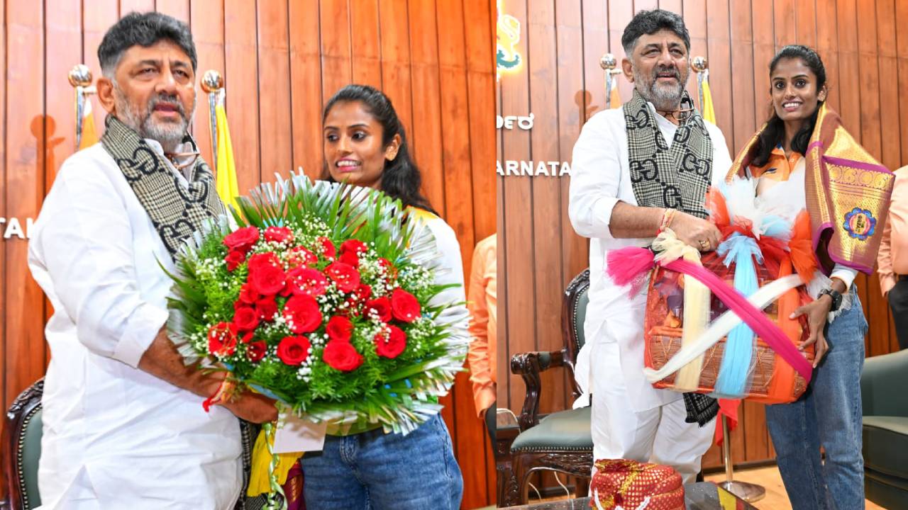 ಬಳಿಕ ಮಾತನಾಡಿದ ಡಿ.ಕೆ.ಶಿವಕುಮಾರ್ ಅವರು, ಅಥ್ಲೆಟಿಕ್ಸ್ನಲ್ಲಿ ನನಗೆ ಹೆಚ್ಚಿನ ಆಸಕ್ತಿ. ಹೀಗಾಗಿ ವಿಜಯಕುಮಾರಿ ಅವರ ಸಾಧನೆ ಬಗ್ಗೆ ಪತ್ರಿಕೆಗಳಲ್ಲಿ ಪ್ರಕಟವಾದ ವರದಿ ಗಮನಿಸಿ ನಮ್ಮ ಮಂಡ್ಯದ ಸಾಧಕಿಗೆ ಅಭಿನಂದಿಸಲಾಗುತ್ತಿದೆ. ಈಕೆಯ ಸಾಧನೆಗೆ ನನ್ನ ಸಂಪೂರ್ಣ ಸಹಕಾರ ನೆರವು ಇರಲಿದೆ ಎಂದರು.