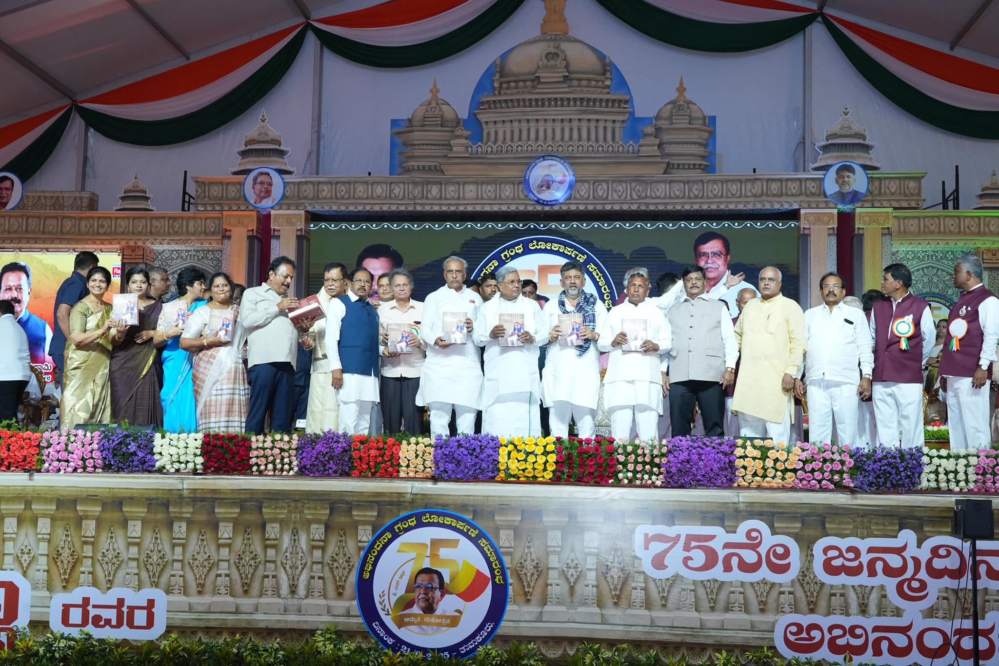 ಸಹಕಾರ ಸಚಿವರು ಹಾಗೂ ಹಾಸನ ಜಿಲ್ಲಾ ಉಸ್ತುವಾರಿ ಸಚಿವರಾದ ಶ್ರೀ ಕೆ.ಎನ್. ರಾಜಣ್ಣ ಅವರ 75ನೇ ಹುಟ್ಟುಹಬ್ಬದ ನಿಮಿತ್ತ ಇಂದು ತುಮಕೂರಿನಲ್ಲಿ ಆಯೋಜಿಸಿದ್ದ ಅಮೃತ ಮಹೋತ್ಸವ ಮತ್ತು ಅಭಿನಂದನಾ ಗ್ರಂಥ ಬಿಡುಗಡೆ ಸಮಾರಂಭದಲ್ಲಿ ಮುಖ್ಯಮಂತ್ರಿಗಳಾದ ಶ್ರೀ ಸಿದ್ದರಾಮಯ್ಯ ಅವರೊಂದಿಗೆ ಪಾಲ್ಗೊಂಡು, ರಾಜಣ್ಣನವರಿಗೆ ಜನ್ಮದಿನದ ಶುಭಾಶಯ ತಿಳಿಸಿ, ಕಾರ್ಯಕ್ರಮವನ್ನು ಉದ್ದೇಶಿಸಿ ಮಾತನಾಡಿದೆ.