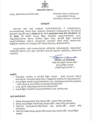 ಫೆ. 16ರ ವರೆಗೆ ರಾಜ್ಯಾದ್ಯಂತ ಕಾಲೇಜುಗಳಿಗೆ ರಜೆ ವಿಸ್ತರಣೆ ; ಉನ್ನತ ಶಿಕ್ಷಣ ಇಲಾಖೆ ಸುತ್ತೋಲೆ