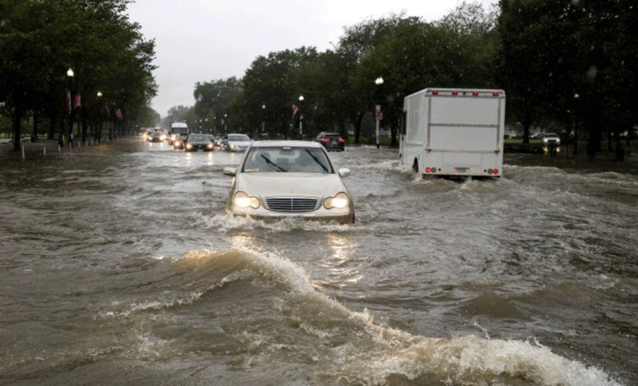ಭಾರೀ ಮಳೆಯಿಂದಾಗಿ ಅಮೇರಿಕದ ರಾಜಧಾನಿ ವಾಷಿಂಗ್ಟನ್ ಡಿ.ಸಿ ಯಲ್ಲಿ ಪ್ರವಾಹ ಪರಿಸ್ಥತಿ ಉಂಟಾಗಿದ್ದು, ಇದರಿಂದಾಗಿ ಸಾವಿರಾರು ಕುಟುಂಬಗಳು ಬೀದಿಗೆ ಬಂದಿವೆ.