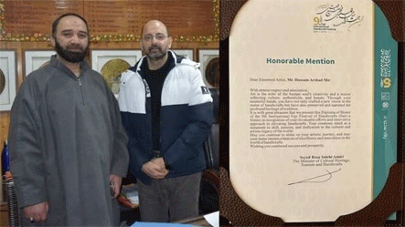 ಟೆಹ್ರಾನ್ನಲ್ಲಿ ನಡೆದ 9ನೇ ಅಂತರರಾಷ್ಟ್ರೀಯ ಫಜ್ರ್ ಕರಕುಶಲ ಉತ್ಸವ ಸರ್ವ್-ಎ-ಸಿಮಿನ್ನಲ್ಲಿ ಕಾಶ್ಮೀರದ ಪ್ರಸಿದ್ಧ ಪೇಪಿಯರ್ ಮ್ಯಾಚೆ ಕುಶಲಕರ್ಮಿ ಮೀರ್ ಅರ್ಷದ್ ಹುಸೇನ್ ಅವರು ಪ್ರಥಮ ಸ್ಥಾನ ಪಡೆದರು. ಇರಾನಿನ ಸಾಂಸ್ಕೃತಿಕ ಪರಂಪರೆ, ಪ್ರವಾಸೋದ್ಯಮ ಮತ್ತು ಕರಕುಶಲ ಸಚಿವ ಸಯೀದ್ ರೆಜಾ ಸಲೇಹಿ ಅಮಿರಿ ಅವರು ಮೀರ್ ಅರ್ಷದ್ ಹುಸೇನ್ ಅವರಿಗೆ ಪ್ರಥಮ ಬಹುಮಾನ ಮತ್ತು ಗೌರವ ಡಿಪ್ಲೊಮಾವನ್ನು ಪ್ರದಾನ ಮಾಡಿದರು.