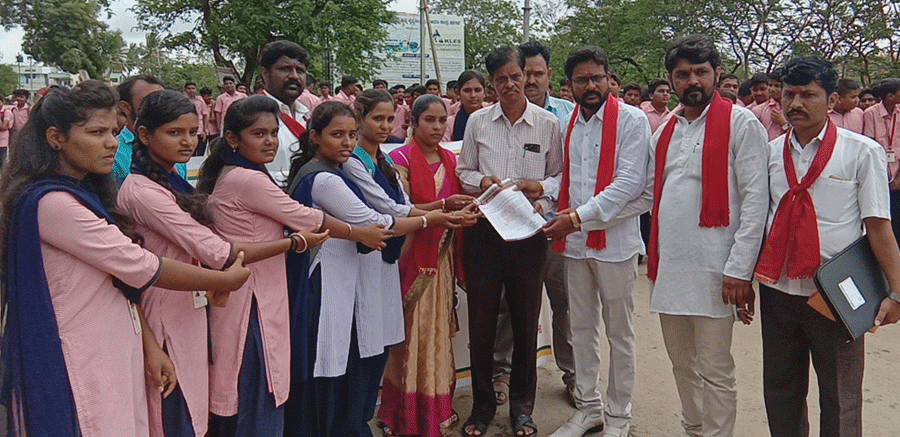 ಈ ಪ್ರತಿಭಟನೆಯಲ್ಲಿ ಸಂಘಟನೆಯ ರಾಜ್ಯ ಗೌರವಾಧ್ಯಕ್ಷ ಶಿವಶಂಕರ ಟೀಕಿಹಳ್ಳಿ, ರಾಜ್ಯ ಉಪಾಧ್ಯಕ್ಷ ಹರೀಶ ಇಂಗಳಗೊಂದಿ, ಮಹಿಳಾ ಜಿಲ್ಲಾಧ್ಯಕ್ಷೆ ಲಕ್ಷ್ಮಿ ಜಿಂಗಾಡೆ, ಜಿಲ್ಲಾ ಸಂಚಾಲಕ ಮಾಲತೇಶ ಗೌಡ ಪಾಟೀಲ, ವಿಷ್ಣು ಜಿಂಗಾಡೆ, ಶಿವರಾಜ ಮಾಳಗಿ, ಸಮಿತಿಯ ಪದಾಧಿಕಾರಿಗಳು ಹಾಗೂ ಕಾಲೇಜಿನ ವಿದ್ಯಾರ್ಥಿ/ವಿದ್ಯಾರ್ಥಿನಿಯರು ಪಾಲ್ಗೊಂಡಿದ್ದರು.