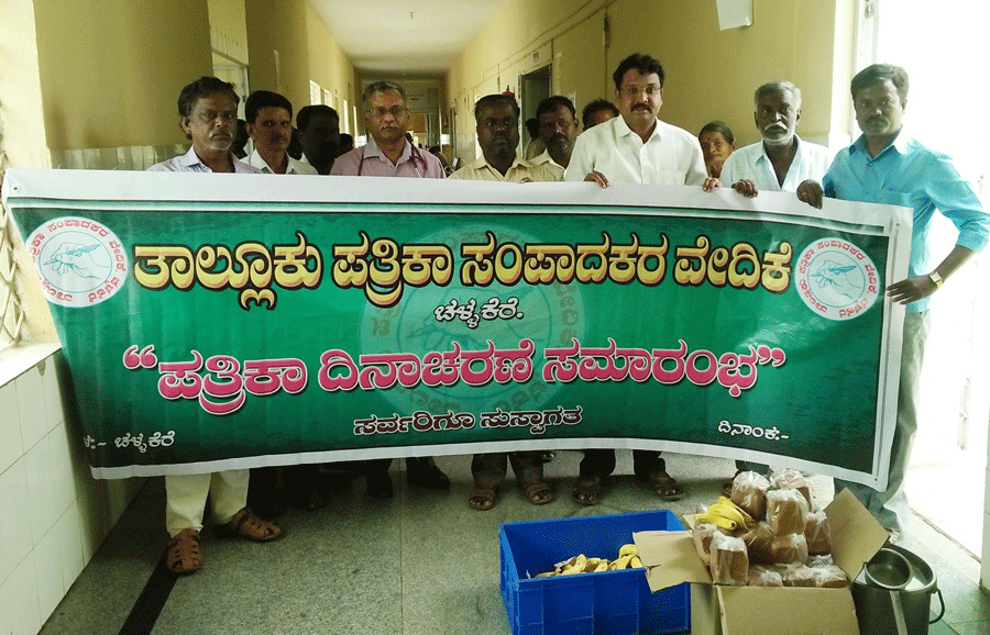 ಅಧ್ಯಕ್ಷ ರಂಗಸ್ವಾಮಿ ಮಾತನಾಡಿ, ಪ್ರತಿವರ್ಷದಂತೆ ಈ ವರ್ಷವೂ ಸಹ ಪತ್ರಿಕಾ ದಿನಾಚರಣೆ ಅಂಗವಾಗಿ ಈ ಕಾರ್ಯಕ್ರಮ ಹಮ್ಮಿಕೊಳ್ಳಲಾಗಿದೆ. ಆಸ್ಪತ್ರೆಯ ರೋಗಿಗಳಿಗೆ ಹಣ್ಣು, ಬ್ರೆಡ್ ನೀಡುವ ಮೂಲಕ ಪತ್ರಿಕಾ ದಿನಾಚರಣೆ ಕಾರ್ಯಕ್ರಮವನ್ನು ಸರಳವಾಗಿ ಆಚರಿಸಲಾಗಿದೆ. ನಮ್ಮ ಈ ಕಾರ್ಯಕ್ರಮಕ್ಕೆ ಹಲವಾರು ರೀತಿಯ ಸಹಕಾರ ನೀಡಿದ ಎಲ್ಲರಿಗೂ ಅಭಿನಂದನೆಯನ್ನು ತಿಳಿಸುವುದಾಗಿ ತಿಳಿಸಿದರು.