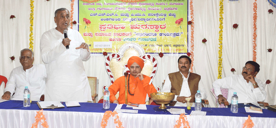 ಜಿಲ್ಲಾ ಗಂಗಾಂಭಿಕ ಬೆಸ್ತರ ಸಂಘ, ಗಂಗಾಮತ ನೌಕರರ ಕ್ಷೇಮಾಭಿವೃದ್ದಿ ಸಂಘದಿಂದ 2018-19 ನೇ ಸಾಲಿನಲ್ಲಿ ಎಸ್.ಎಸ್. ಎಲ್.ಸಿ. ಪಿ.ಯು.ಸಿ.ಯಲ್ಲಿ ಹೆಚ್ಚು ಅಂಕ ಪಡೆದ ವಿದ್ಯಾರ್ಥಿಗಳಿಗೆ ರಂಗಯ್ಯನಬಾಗಿಲು ಬಳಿಯಿರುವ ಗಂಗಾಂಭಿಕ ಸಮುದಾಯ ಭವನದಲ್ಲಿ ಭಾನುವಾರ ಹಮ್ಮಿಕೊಳ್ಳಲಾಗಿದ್ದ ಪ್ರತಿಭಾ ಪುರಸ್ಕಾರ, ಅಭಿನಂದಾನ ಕಾರ್ಯಕ್ರಮ, ಅಂತರಾಷ್ಟ್ರೀಯ ಯೋಗ ದಿನಾಚರಣೆ ಉದ್ಘಾಟಿಸಿ ಮಾತನಾಡಿದರು.