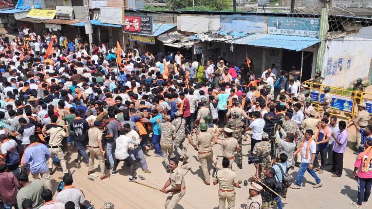 ಗಣೇಶನ ಮೆರವಣಿಗೆ ಮೇಲೆ ಕಲ್ಲು ತೂರಾಟ ಪ್ರಕರಣ ಖಂಡಿಸಿ ಮದ್ದೂರಿನಲ್ಲಿ ಸೋಮವಾರ ಹಿಂದೂಪರ ಸಂಘಟನೆಗಳು, ಬಿಜೆಪಿ, ಜೆಡಿಎಸ್ನಿಂದ ಬೃಹತ್ ಪ್ರತಿಭಟನೆ ನಡೆಸಲಾಯಿತು. ಈ ವೇಳೆ ಪರಿಸ್ಥಿತಿ ಉದ್ವಿಗ್ನಗೊಂಡಿದ್ದರಿಂದ ಪ್ರತಿಭಟನಾಕಾರರನ್ನು ಚದುರಿಸಲು ಪೊಲೀಸರು ಲಾಠಿಚಾರ್ಜ್ ನಡೆಸಿದ್ದಾರೆ. ಇದರ ವಿರುದ್ಧ ಆಕ್ರೋಶ ಹೊರಹಾಕಿರುವ ಹಿಂದೂಪರ ಸಂಘಟನೆಗಳ ಮುಖಂಡರು ನಾಳೆ ಮದ್ದೂರು ಬಂದ್ಗೆ ಕರೆ ನೀಡಿದ್ದಾರೆ.