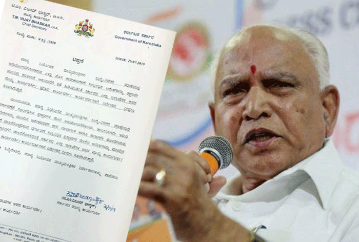 ಈ ಹಿನ್ನೆಲೆಯಲ್ಲಿ ಮುಖ್ಯಕಾರ್ಯದರ್ಶಿ ವಿಜಯ ಬಾಸ್ಕರ್ ಅವರಿಗೆ ನಿಯೋಜಿತ ಮುಖ್ಯಮಂತ್ರಿ ಯಡಿಯೂರಪ್ಪ ಅವರು ಪತ್ರ ಬರೆದಿದ್ದು, ಜುಲೈ ತಿಂಗಳಲ್ಲಿ ನಡೆಸಿರುವ ಹೊಸ ಯೋಜನೆಗಳು ಹಾಗೂ ವರ್ಗಾವಣೆ ಮಾಡುವ ಸಂಬಂಧಿಸಿದ ಪ್ರಸ್ತಾವಗಳ ಮೇಲೆ ಅನುಮೋದನೆಗೊಂಡಿರುವ, ಜಾರಿಯಾಗದೇ ಇರುವ ಆದೇಶಗಳನ್ನು ಮುಂದಿನ ಆದೇಶ ಬರುವವರೆಗೂ ಜಾರಿ ಮಾಡದಂತೆ ಅಧಿಕಾರಿಗಳಿಗೆ ಸೂಚನೆ ನೀಡಲು ಕಾರ್ಯದರ್ಶಿಗಳಿಗೆ ಸೂಚಿಸಿದ್ದಾರೆ.