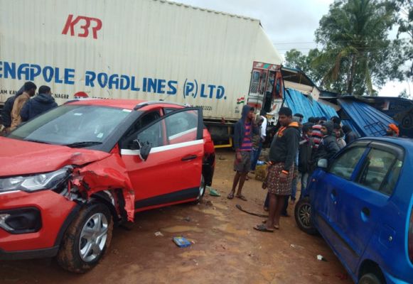 ಬೆಂಗಳೂರಿನಿಂದ ಬಂದಿದ್ದ ಕಂಟೇನರ್ ಲಾರಿ ರಸ್ತೆ ಪಕ್ಕದಲ್ಲಿ ನಿಲ್ಲಿಸಿದ್ದ ಸ್ವಿಫ್ಟ್ ಕಾರ್ಗೆ ಗುದ್ದಿದೆ. ನಂತರ ಅಲ್ಲೇ ಪಕ್ಕದಲ್ಲಿದ್ದ ಕಾರಿಗೂ ಡಿಕ್ಕಿಹೊಡೆದು ನಂದಿನಿ ಪಾರ್ಲರ್ ಒಂದಕ್ಕೆ ನುಗ್ಗಿದೆ. ಪರಿಣಾಮ ಕಾರುಗಳೆರಡೂ ಸಂಪೂರ್ಣ ಜಖಂ ಆಗಿದ್ದು, ಕಾರಿನಲ್ಲಿದ್ದ ಇಬ್ಬರು ಸ್ಥಳದಲ್ಲೇ ಸಾವನ್ನಪ್ಪಿದ್ದಾರೆ.