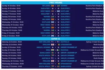 ಸೂಪರ್ 12 ಹಂತದಲ್ಲಿ ಆತಿಥೇಯ ಆಸ್ಟ್ರೇಲಿಯಾ ಗ್ರೂಫ್ 1ರಲ್ಲಿದ್ದು ನಂಬರ್ 1 ತಂಡ ಇಂಗ್ಲೆಂಡ್, ನ್ಯೂಜಿಲೆಂಡ್, ಅಫ್ಘಾನಿಸ್ತಾನ, ಹಾಗೂ ಅರ್ಹತಾ ಸುತ್ತಿನ ಎರಡು ತಂಡಗಳು ಈ ಗುಂಪಿನಲ್ಲಿ ಇರಲಿದೆ.