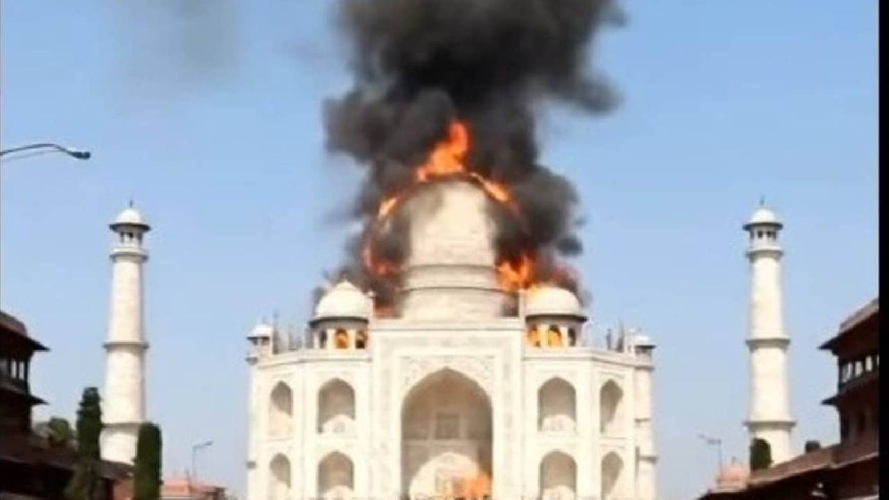 ಉತ್ತರ ಪ್ರದೇಶದ ಆಗ್ರಾದಲ್ಲಿರುವ ವಿಶ್ವ ಪರಂಪರೆಯ ಸ್ಮಾರಕವಾದ ತಾಜ್ ಮಹಲ್ನ ಖ್ಯಾತಿಗೆ ಕಳಂಕ ತರುವ ಮತ್ತೊಂದು ಪ್ರಯತ್ನ ನಡೆದಿದೆ. ತಾಜ್ನ ಮುಖ್ಯ ಗುಮ್ಮಟದಿಂದ ಕಪ್ಪು ಹೊಗೆ ಮತ್ತು ಜ್ವಾಲೆಗಳು ಮೇಲೇರುತ್ತಿರುವುದನ್ನು ತೋರಿಸುವ 33 ಸೆಕೆಂಡುಗಳ ವೀಡಿಯೊ ವೈರಲ್ ಆಗುತ್ತಿದೆ. ಈ Al- ರಚಿತ ವೀಡಿಯೊವನ್ನು ಆಸ್ಟ್ರೇಲಿಯಾದ ನಟ ಆಡ್ರಿಯನ್ ಜೀ ಫೇಸ್ಬುಕ್ನಲ್ಲಿ ಪೋಸ್ಟ್ ಮಾಡಿದ್ದಾರೆ, ಆದರೆ ಈಗ ಅದನ್ನು ವಿರೂಪಗೊಳಿಸಿ ಹಲವಾರು ಸಾಮಾಜಿಕ ಮಾಧ್ಯಮ ವೇದಿಕೆಗಳಲ್ಲಿ ಪೋಸ್ಟ್ ಮಾಡಲಾಗುತ್ತಿದೆ.
