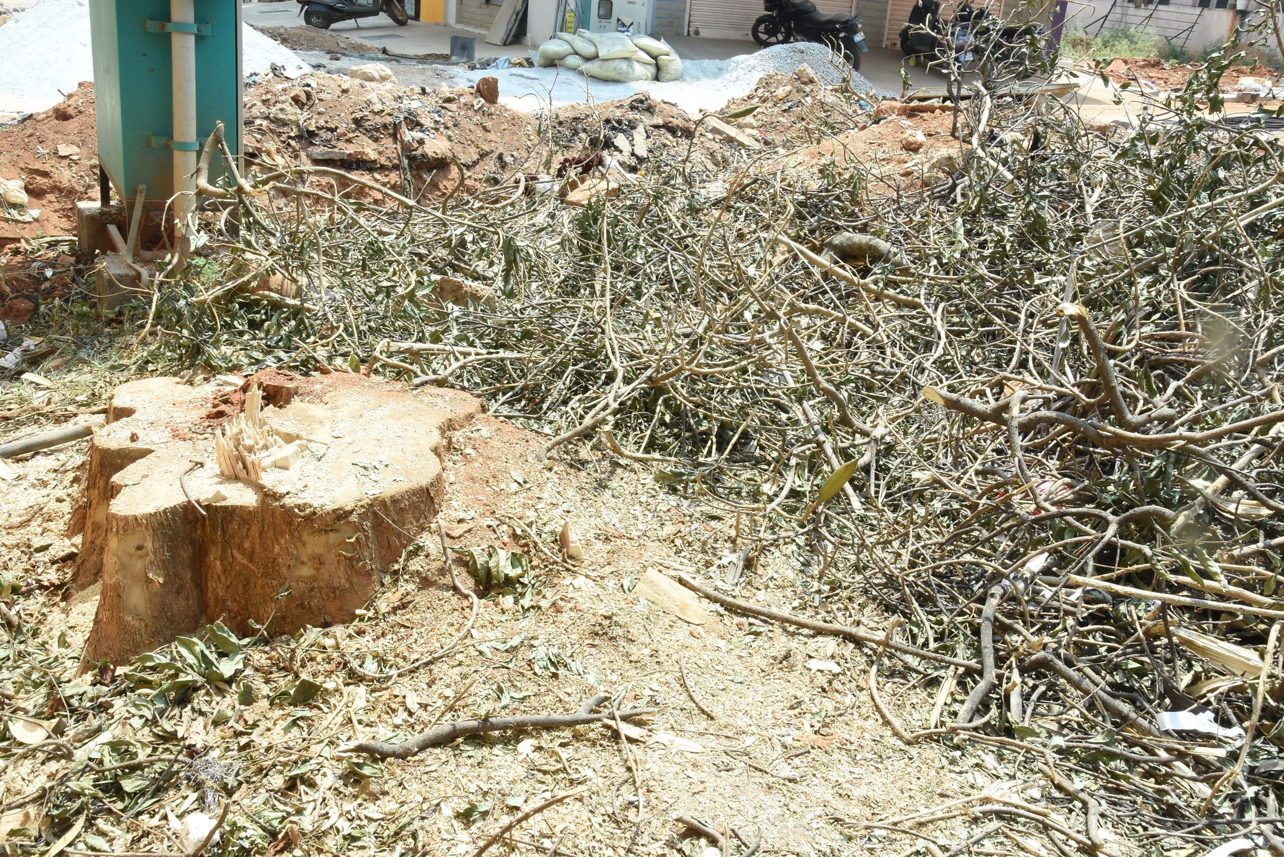 ಆದರ್ಶನಗರದಲ್ಲಿ ಮೂರನೇ ಕ್ರಾಸ್ ಆಸುಪಾಸಿನಲ್ಲಿ ಮೂರು ಮರಗಳನ್ನು ಕಡಿಯಲಾಗಿದೆ. ಹನುಮಂತಪುರ- ಕುವೆಂಪುನಗರ ಸಂಪರ್ಕಿಸುವ ಮುಖ್ಯ ರಸ್ತೆಯ ಬದಿಯಲ್ಲಿದ್ದ ಏಳು ಮರಗಳನ್ನು ಕಟಾವು ಮಾಡಲಾಗಿದೆ. ಒಟ್ಟು ಒಂಭತ್ತು ಮರಗಳು ಮೂರು ದಿನಗಳ ಅಂತರದಲ್ಲಿ ನೆಲಕ್ಕುರುಳಿವೆ.