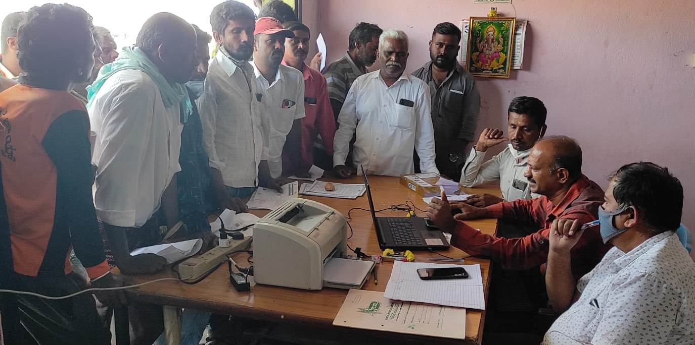 ಬ್ಯಾಂಕ್ ಪಾಸ್ಬುಕ್ ಜೆರಾಕ್ಸ್ ಹಾಗೂ ಫ್ರೂಟ್ಸ್ ಐಡಿ ಹಿಡಿದುಕೊಂದು ಸರತಿ ಸಾಲಿನಲ್ಲಿ ರೈತರು ನಿಂತರು. ಸಣ್ಣ ಮತ್ತು ಅತಿ ಸಣ್ಣ ಹಿಡುವಳಿದಾರರು ನೋಂದಣಿ ಮಾಡಿಸಿ ಹಿಂದಿರುಗಿದರೆ ದೊಡ್ಡಹಿಡುವಳಿದಾರ ನೋಂದಣಿಯಾಗದೆ ಪರದಾಡುತ್ತಿದ್ದರು.