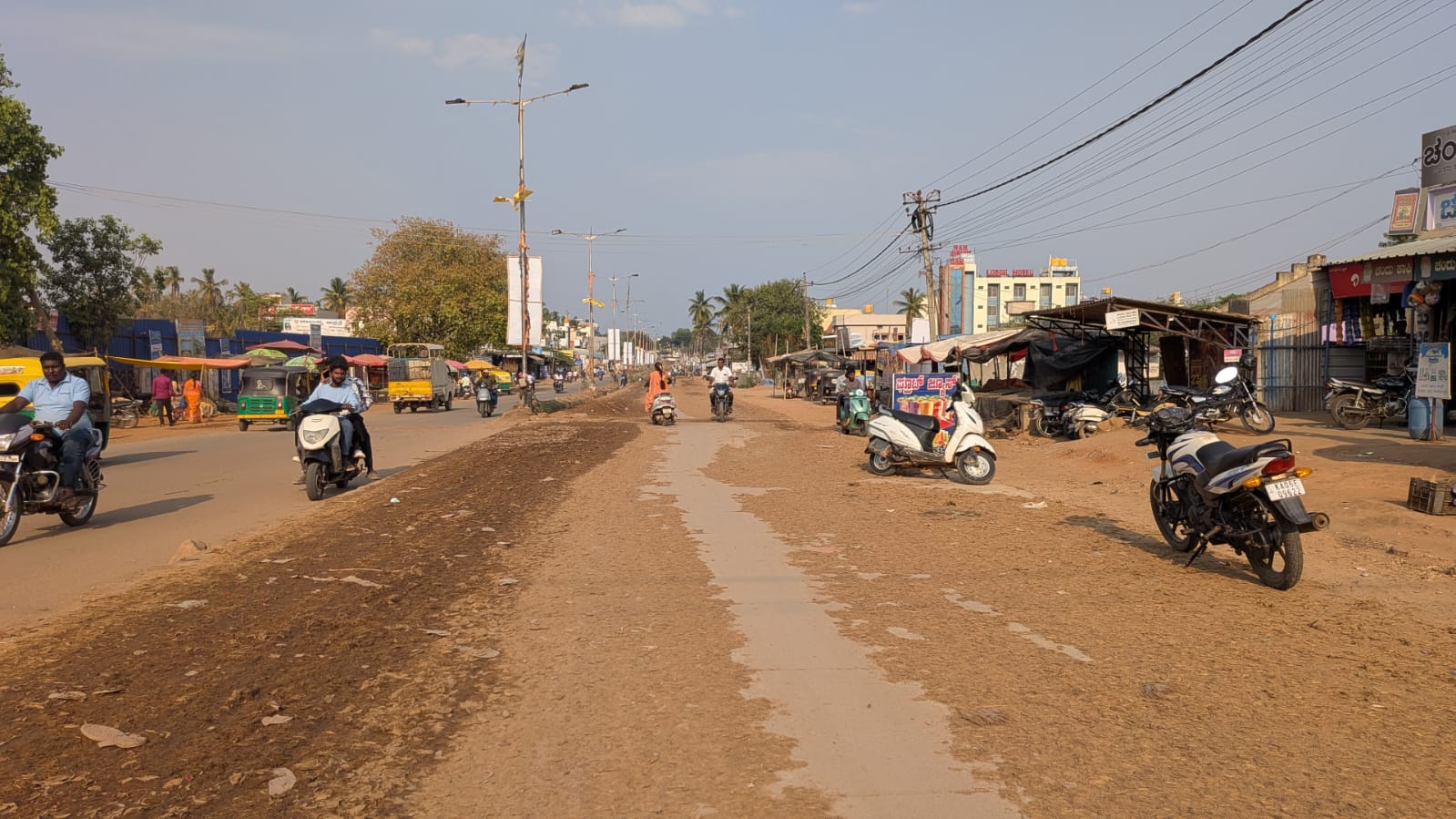 ರಸ್ತೆ ನಿರ್ಮಾಣಕ್ಕೆಂದು ಬೀದಿ ದೀಪಗಳ ವೈರ್ ಗಳ ಸಂಪರ್ಕ ಕಡಿತ ಗೊಳಿಸಿದ್ದು ರಾತ್ರಿಯ ಹೊತ್ತು ರಸ್ತೆಯಲ್ಲಿ ಕಾರ್ಗತ್ತಲು ಕವಿದಿರುತ್ತದೆ ಇಷ್ಟಲ್ಲೆಲ್ಲಾ ಆದರೂ ಸಂಬಂದಪಟ್ಟ ಅಧಿಕಾರಿಗಳು ಕಿಂಚಿತ್ತೂ ಗಮನಿಸದೆ ಬೇಜವಾಬ್ದಾರಿಯಿಂದ ವರ್ತಿಸುತ್ತಿದ್ದಾರೆ ನಿತ್ಯ ಸಾರ್ವಜನಿಕರು ಸಂಚಾರ ದಟ್ಟಣೆಯಲ್ಲಿ ಹೈರಾಣಾಗುತ್ತಿದ್ದಾರೆ.