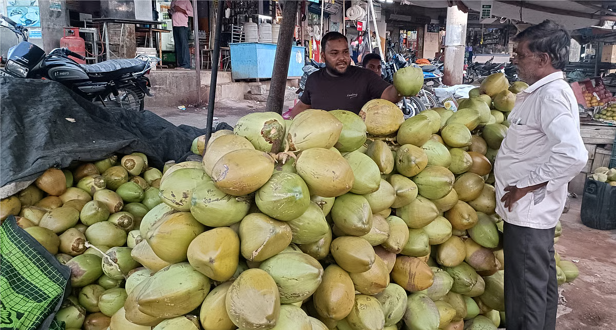 ಎಳನೀರಿಗೆ ಡಿಮ್ಯಾಂಡ್ : 50 ರೂ.ಗಳಿಗೆ ಸಿಗುತ್ತಿದ್ದ ಎಳನೀರು ಈಗ 60 ರಿಂದ 70 ರೂ.ಗಳವರೆಗೂ ಮಾರಾಟವಾಗುತ್ತಿದೆ. ಆದರೆ ಈ ಧಾರಣೆಯ ಫಲ ತೆಂಗು ಬೆಳೆಗಾರರಿಗೆ ಸಿಗುತ್ತಿಲ್ಲ. ತೆಂಗಿನ ತೋಟಗಳಿಂದ ಕೇವಲ 25 ರೂ.ಗಳಿಗೆ ಚೌಕಾಸಿ ಮಾಡಿ ತರುವ ಮಾರಾಟಗಾರರು ತಾವು ಮಾತ್ರ ದುಪ್ಪಟ್ಟಿಗಿಂತ ಹೆಚ್ಚಿನ ದರಕ್ಕೆ ಮಾರಾಟ ಮಾಡುತ್ತಿದ್ದಾರೆ. ಒಂದು ಸಣ್ಣ ಎಳನೀರಿನ ಬೆಲೆಯೂ 60 ರೂ.ಗಳಷ್ಟಾಗಿದೆ. ಎಳನೀರಿನ ಹಿನ್ನೆಲೆ ಗೊತ್ತಿಲ್ಲದವರಿಗೆ ಮಾರಾಟಗಾರರು ಹಳೆಯ ಎಳನೀರು ಅಥವಾ ಕಾಯಿಯಾಗಿರುವ ಎಳನೀರನ್ನೇ ನೀಡಿ ಮಾಮೂಲಿ ದರ ವಸೂಲಿ ಮಾಡುತ್ತಿದ್ದಾರೆ. ಹೀಗಾಗಿ ಎಳನೀರು ಮಾರಾಟ ಮಾಡುವವರು ಬಂಪರ್ ಧಾರಣೆ ಪಡೆಯುತ್ತಿದ್ದಾರೆ.